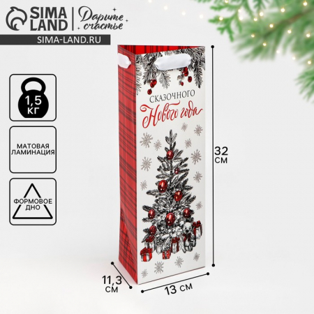 Пакет подарочный под бутылку новогодний «Сказочного Нового года», 13?32?11 см (арт. 10385723)