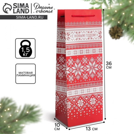 Пакет подарочный под бутылку новогодний «Уютного нового года», 13?36?10 см (арт. 4275594)