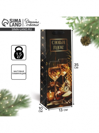 Пакет подарочный под бутылку новогодний «С Новым годом», 13?35?10 см (арт. 10350652)