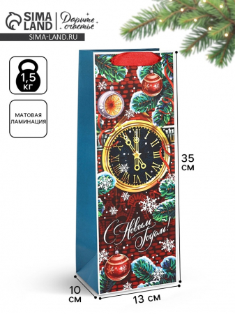 Пакет подарочный под бутылку «С Новым годом», 13?35?10 см (арт. 4275599)