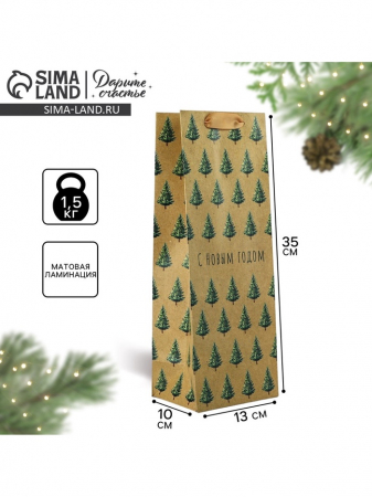 Пакет подарочный под бутылку новогодний «С Новым годом», 13?35?10 см (арт. 10350644)