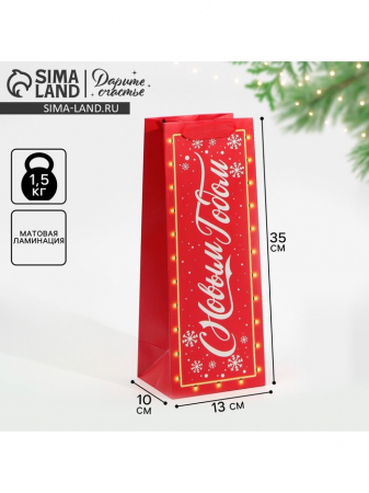 Пакет подарочный под бутылку новогодний «С Новым годом!», 13?35?10 см (арт. 7655910)