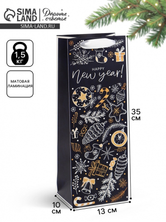 Пакет под бутылку подарочный новогодний ламинированный Happy New Year, 13?35?10 см (арт. 4984277)