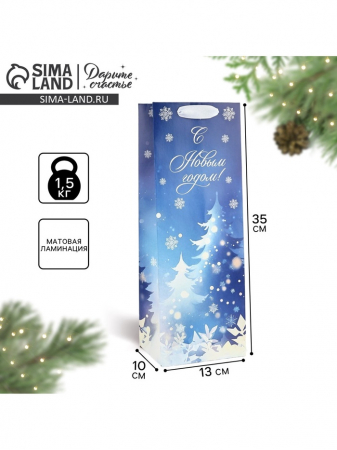 Пакет подарочный под бутылку новогодний «С Новым годом», 13?35?10 см (арт. 10350646)