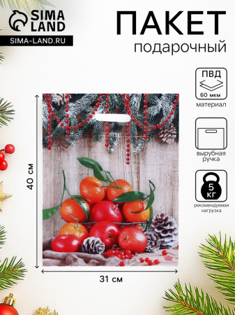 Пакет новогодний «Композиция с мандаринами», полиэтиленовый с вырубной ручкой, 40?31 см (арт. 4481436)