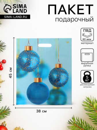 Пакет подарочный новогодний «Шарики в золоте», полиэтиленовый с вырубной ручкой, 45?38 см (арт. 10636535)