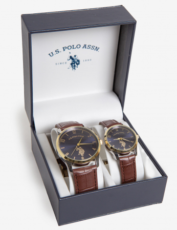 HIS AND HERS BROWN STRAP BLUE DIAL WATCH SET (арт. USC2621UO-0000A)