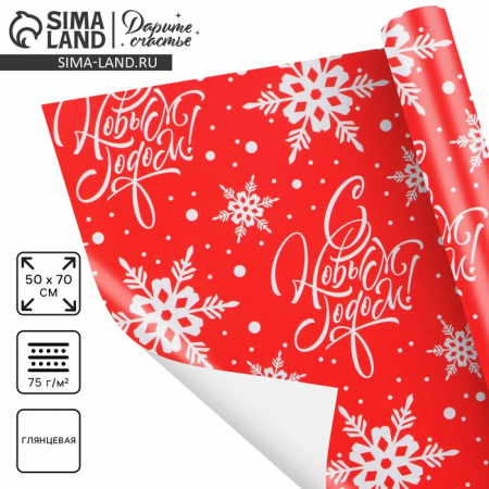 Упаковочная бумага на новый год «С Новым Годом !», 50?70 см, глянцевая (арт. 7795182)