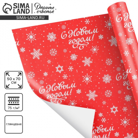 Упаковочная бумага на новый год «Снежный глянцевая», 50?70 см, глянцевая (арт. 10367034)