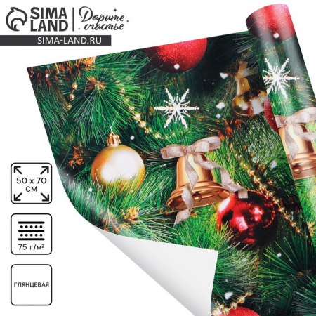 Упаковочная бумага на новый год «Праздник у ёлки», 50?70 см, глянцевая (арт. 7795181)