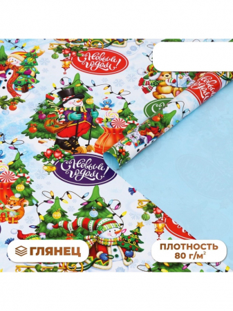 Бумага упаковочная новогодняя глянцевая «С Новым годом», двусторонняя, 70?100 см (арт. 7089681)