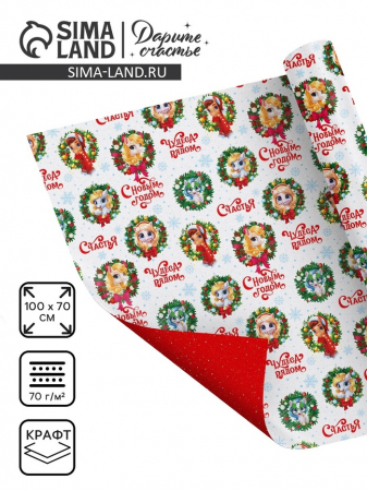 Бумага двухсторонняя крафтовая «Новый год 2026», лошади, 70?100 см (арт. 10864082)