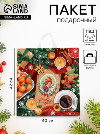 Пакет подарочный новогодний «Угощение», полиэтиленовый с петлевой ручкой, 40?42 см, 45 мкм (арт. 10617967)