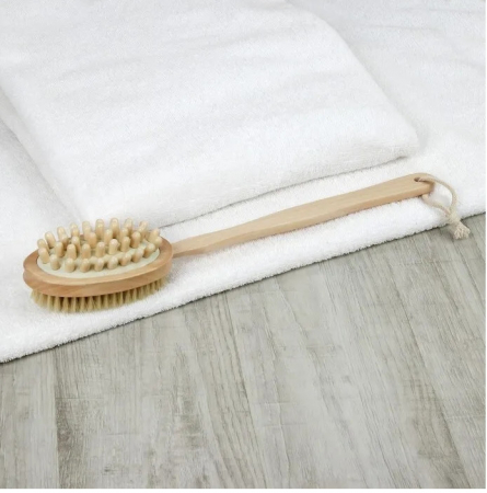 Двухсторонняя щетка разработана для максимально эффективного антицеллюлитного массажа и интенсивного обновления кожи. Натуральная щетина щетки обеспечивает активный массаж и улучшение кровотока, активизирует расщепление подкожного жира. Массаж с помощью деревянных зубцов на обратной стороне щетки улучшает лимфоток и стимулирует выведение лишней жидкости из тканей.