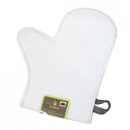 Классическая рукавица для бани из плотного войлока. Защитит ладони от высоких температур, горячих предметов и возможных повреждений, которые может оставить ручка веника