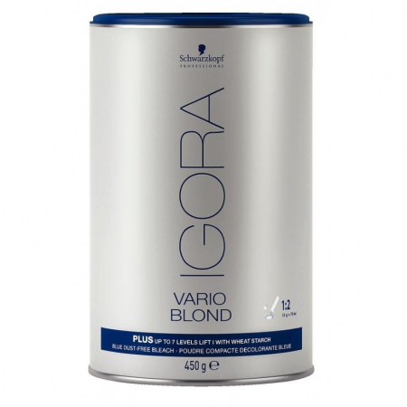 Пудра Игора Варио Блонд Плюс от Шварцкопф с восстанавливающим пшеничным крахмалом обеспечит осветление до 7 уровней. Не образует пыль. Смешивается с лосьонами-окислителями Igora Royal 3%, 6% или 9% в пропорции 1:2 (одна часть порошка к двум частям лосьона-окислителя). Время выдержки — 20-45 минут в зависимости от желаемого результата осветления, качества волос и применяемого окислителя.