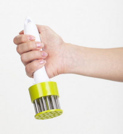Во время обработки в отличие от молотка для мяса - никакого шума и ошметков, разлетевшихся по кухне.