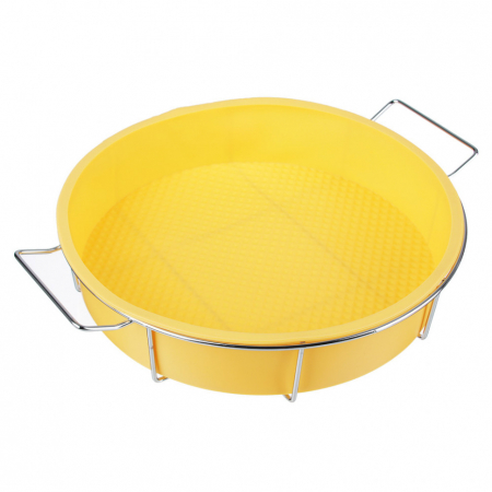Форма для выпечки круглая размером 25х6 см из силикона с рельефным дном на хромированной металлической подставке с ручками, предназначена для выпечки изделий из теста в духовых шкафах.