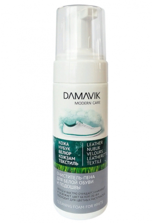 Пена-очиститель DАМАVІК для белой обуви и подошвы подойдёт для эффективного очищения белой обуви и белых подошв, рантов и других изделий белого цвета. Высокая эффективность средства позволяет быстро восстановить цвет обуви.