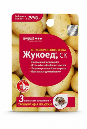 Новое решение в борьбе с колорадским жуком! Жукоед — инновационный препарат от колорадского жука на картофеле, в состав которого входят три активных действующих вещества, принадлежащие к разным классам химических соединений, отличающихся по механизму действия и физическим свойствам: