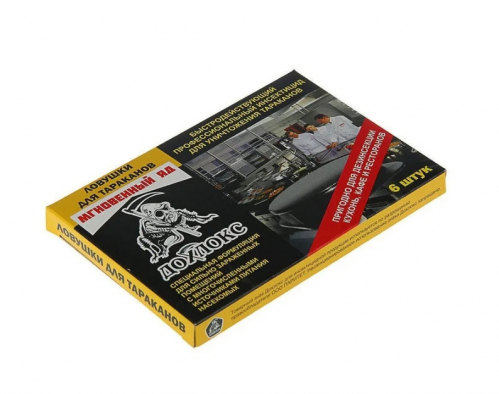 Дохлокс "Мгновенный яд" - самые сильные ловушки для тараканов. Благодаря уникальной приманке и повышенному содержанию яда сохраняют свою эффективность в течение 2-3 месяцев даже в самых грязных помещениях.Примерный расход средства в условиях обычной квартиры: если тараканов мало, они появились недавно 1 упаковки хватит на 60 кв. метров. Если тараканов мало, они появились давно 1 упаковки хватит на 30 кв. метров. Если тараканов много, они появились недавно 1 упаковки хватит на 15 кв. метра. Если тараканов много, они появились давно 1 упаковки хватит на 10 кв. метров.