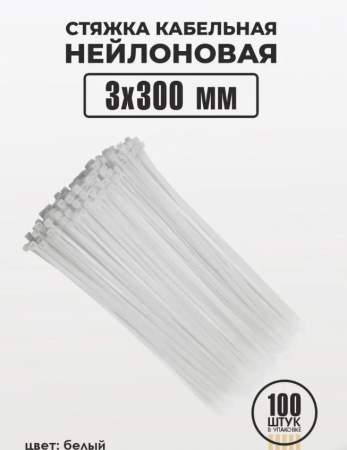 Хомут-стяжка 100шт 300*3.БЕЛЫЙ 7583 (арт. 0046096)