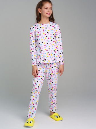 Пижама regular fit: лонгслив, брюки из качественного и приятного на ощупь трикотажа джерси. Высокое содержание хлопка 95%. Благодаря наличию эластана в составе ткани изделие проще в уходе и держит форму. Брюки с эластичным поясом со шнурком.