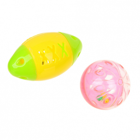 Порадуйте своего питомца набором игрушек ! Легкие и прочные пластмассовые игрушки в виде шарика и регби-мяча оснащены бубенчиком внутри, который привлекает внимание и пробуждает охотничий инстинкт животного. Идеальная добыча для вашего пушистого друга – мячики легко катятся, подпрыгивают и удерживают интерес кошки надолго. Безопасные материалы и компактный размер делают их подходящими для ежедневных игр. Игрушки для радости и активности вашего питомца!
