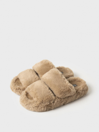 + трендовые меховые тапочки «под норку» с двумя широкими ремнями — стильный элемент домашнего гардероба