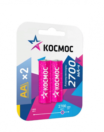 Набор аккумуляторов космос NiMh, 2700 mAh, тип АА, 2 штуки обладают высокой емкостью, отсутствием "эффекта памяти", возможностью быстрого заряда. Используются в цифровых фотокамерах, радиоуправляемых игрушках, и других устройствах с высоким энергопотреблением. Температура эксплуатации от 0 до +45 °C.