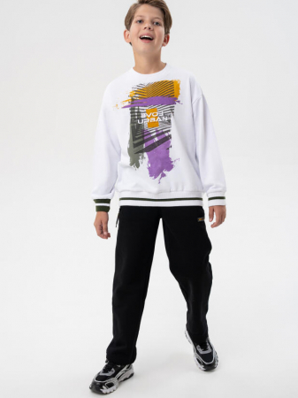 Сочетайте белый подростковый свитшот с джинсами или спортивными брюками PlayToday для повседневного образа, а для школы дополняйте комплект строгими брюками бренда.