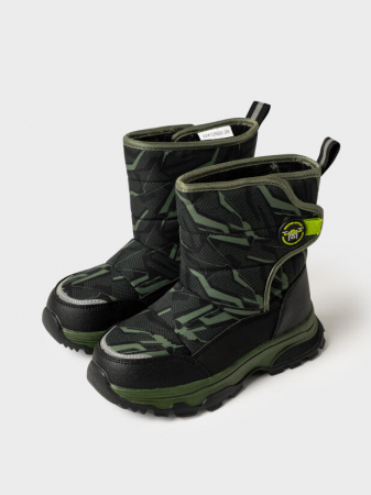 Сапоги-дутики детские зимние для мальчика. Трехслойная конструкция верха обуви с высокими теплозащитными свойствами. Waterproof. Подкладка и стелька - шерстяной мех 80%. Съемная стелька. Модель имеет широкую липучку. Усиленная защита носочной и пяточной части специальными материалами. Формоустойчивый задник поддерживает стопу в правильном положении. Утолщенная подошва из терморезины имеет противоскользящий протектор. Рекомендованный температурный режим ( зависит от активности ребенка и поддевы под обувь) ( зависит от активности ребенка и поддевы под обувь) от 0°С до - 15°С.