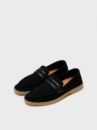 Классические школьные черные лоферы из натуральной замши для мальчика подростка от PlayToday — мягкая и удобная обувь, которая подойдёт как сменка в школу или для прогулок в тёплое время года. Универсальный вариант на весну, лето или раннюю осень. Модель рассчитана на узкую стопу.