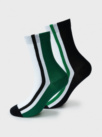 В комплекте — 2 пары в универсальных оттенках: белый, тёмно-зелёный и чёрный цвета прекрасно подходят для стильных повседневных и школьных образов. Носки отлично сочетаются с кроссовками, школьной обувью или физкультурной формой — незаменимая часть гардероба мальчика.