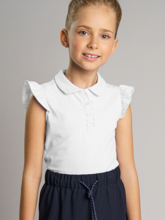 Школьное белое поло из пике - прекрасная альтернатива рубашке в школу. Поло прямого силуэта с рукавами-крылышками для школы всегда выглядит элегантно и по-взрослому. Минималистичный дизайн модели делает поло базовым элементом для комфортного повседневного гардероба девочки подростка. Высокое содержание хлопка 95%. Благодаря наличию эластана в составе ткани футболка для школы проще в уходе и отлично держит форму.