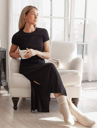 Платье выполнено из трикотажа в широкий рубчик. Модель дополнена высокими разрезами по бокам. Премиальное качество хлопковых волокон и наличие эластана в составе изделия способствуют идеальной посадке по фигуре не сковывая движений. Изделие сохранит свой безупречный внешний вид в течении долгого времени.