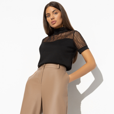 Состав: Трикотаж «милано», кружево (65% п/э, 30% вискоза, 5% стрейч)