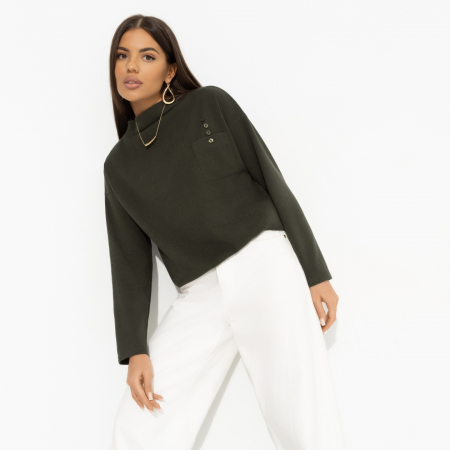 Джемпер женский «Долгожданное приглашение (green)» из трикотажа «джерси» — это больше, чем просто одежда. Это модный акцент, который добавит вашему гардеробу изысканности и стиля. Представьте себе, как вы облачаетесь в этот женский джемпер и чувствуете, как мягкость ткани обнимает вас с нежностью. Спущенная линия плеча и прямой крой создают расслабленный образ, идеально подходящий для повседневных прогулок или уютных вечеров с друзьями. Карман на передней части изделия добавляет практичности, а миниатюрные пуговицы придают джемперу женственности и очарования. Этот джемпер прекрасно смотрится как в заправленном виде, так и навыпуск, позволяя создавать разнообразные образы.