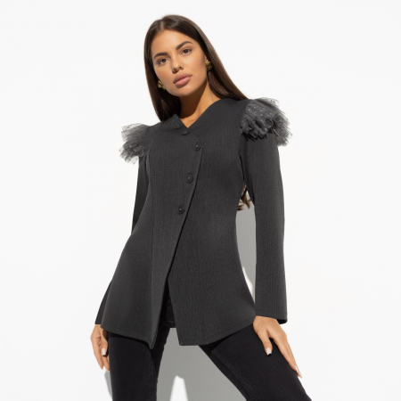 Жакет «Модная провокация (new)» — это настоящее воплощение смелости и утончённого вкуса, которое идеально подойдёт для тех, кто стремится выделиться из толпы. Ассиметричная линия застёжки добавляет нотку экстравагантности, делая модель особенной и неповторимой. Всё внимание сосредоточено на удивительном объёмном декоре из сетки на плечах, который придаёт изделию уникальность и выразительность. Такой жакет станет незаменимым элементом гардероба для тех, кто готов инвестировать в стиль и соблазн. Оптом приобретая данное изделие, вы получаете возможность подчеркнуть индивидуальность своего бизнеса.