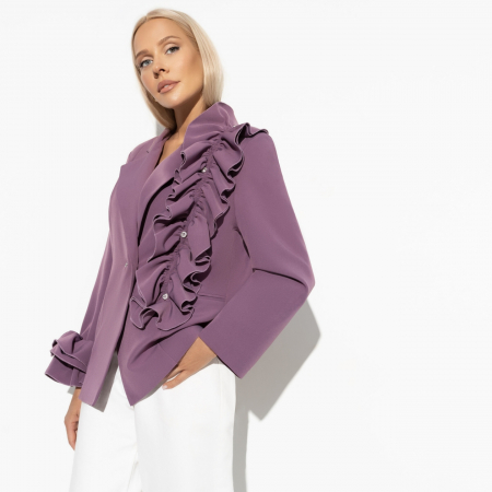 Жакет «На модном показе» обладает съемными воланами, что позволяет вам создавать различные образы с легкостью. Мгновенно преобразуйтесь из fashion-дивы в стильную девушку в розовом жакете или уберите воланы для более строгого и классического вида. Этот жакет станет вашим верным спутником в мире моды.