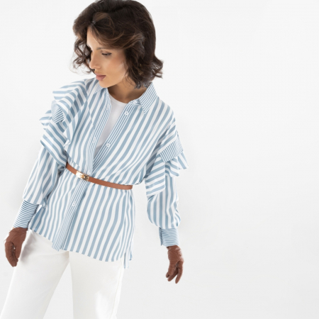 Почему стоит выбрать именно эту рубашку? Она идеально подходит как для повседневной носки, так и для создания более формального образа. Сочетание двух типов полоски и изящные простроченные края рюш делают её универсальной и легко сочетаемой с другими элементами гардероба. Представьте, как эта рубашка станет незаменимой частью вашего стиля. Будь то джинсовая рубашка женская или рубашка белая женская — наш продукт легко адаптируется к различным модным трендам. Покупая оптом, вы получаете возможность создать разнообразный и функциональный гардероб для ваших клиентов или сотрудников.
