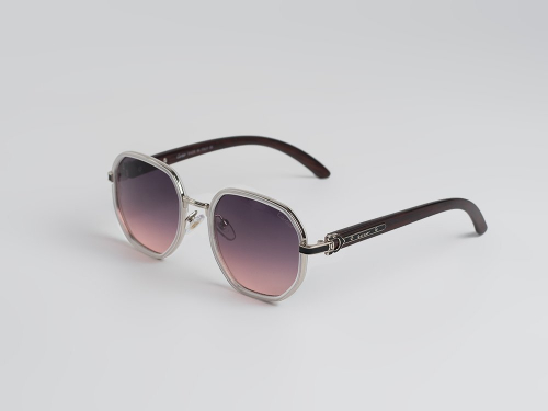 Металлическая оправа подчеркивает форму очков, а дужки с эффектом дерева и фирменным