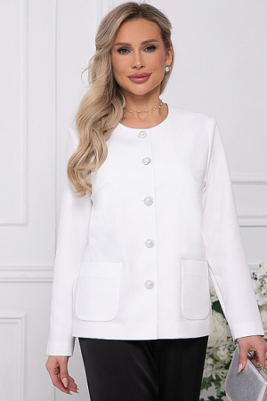 Жакет из костюмной ткани прямого силуэта в стиле шанель.По переду функциональные накладные карманы и  центральная застежка на нарядные жемчужные пуговицы.