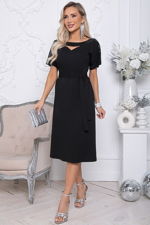 Платье из трикотажного полотна А-образного силуэта с отделкой из трикотажа с пайетками.Пояс из основной ткани в комплекте.