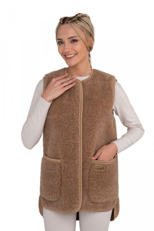 Застежка молния., Подходит для мужчин и женщин., Меховой жилет на молнии, без воротника с удлиненной спинкой. Отлично сидит на любой фигре, высота ворса 12 мм, изнутри меховой начес 2-3 мм. Жилет обработан по краю качественным плотным кантом, теплый и уютный. Подходит для повседневной носки., Терапевтическое воздействие жилета :, Массаж ворсинками шерсти овцы воздействует на нервные окончания, что повышает сопротивляемость организма болезням. Овечья шерсть известна своей теплотой. Однако изделия из нее более тяжелые, чем верблюжьи. Постоянно действующее тепло на очаг заболевания позволяет снизить боли и облегчить состояние больного при радикулитах., Оздоровительный эффект:, Жилет классического дизайна универсален для мужчин и женщин. Постоянное ношение изделия позволяет повысить иммунитет, снять напряжение в мышцах спины и ослабить боли. Рекомендуется для людей, страдающих сердечно-сосудистыми заболеваниями, позвоночными и простудными болезнями., Уход за изделием:, Жилет шерстяной - отличный помощник и лекарь. Он достаточно долго прослужит вам, но при этом потребует некоторых усилий. Шерсть овцы нельзя стирать в горячей воде, следовательно, жилет стирают вручную. Для этого используются специальные средства. Гладить и отбеливать запрещается. Высушивать жилет классик следует на плоской поверхности. Ни в коем случае нельзя сушить на солнце или батареи. Рекомендации по применению: Использовать ежедневно., Наши изделия созданы из новейшего, уникального, разработанного специально для нас, материала на основе натуральной шерсти. Невероятно мягкий, легкий, пластичный он подарит тепло и комфорт своей обладательнице. Стильный фасон отвечает всем современным тенденциям моды!, Все наши лекала уникальны и не имеют аналогов, разработаны на собственном швейном производстве фабрики WOOLLAMB, это обеспечивает отличную посадку и комфортное использование для любой фигуры., Благодаря высокому содержанию ланолина, шерсть обладает высокими оздоравливающими и согревающими свойствами, благоприятно влияет на весь организм в целом! Одежда из натуральной шерсти подарит легкость, комфорт и сухое тепло рожденное природой!