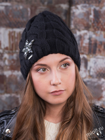 Шапка для девочки школьного возраста. Благодаря утеплителю и хлопковой подкладке не продувается ветром. Рисунок в крупную вертикальную косу. Декорирована шевроном в виде звезды из камней в оправе крупной огранки.