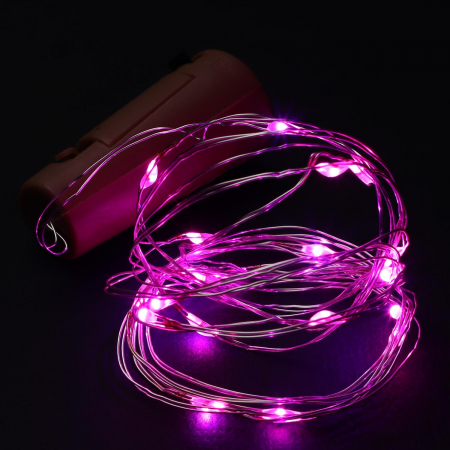 Гирлянда с пробкой роса на батарейках 20 LED 2 м розовая