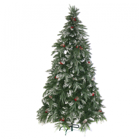 Ель искусственная с ягодами, шишками PE+PVC 70*0,12 мм 50*170 мм 2362PVC/111PE веток 3 м заснеженная (арт. В7-18)