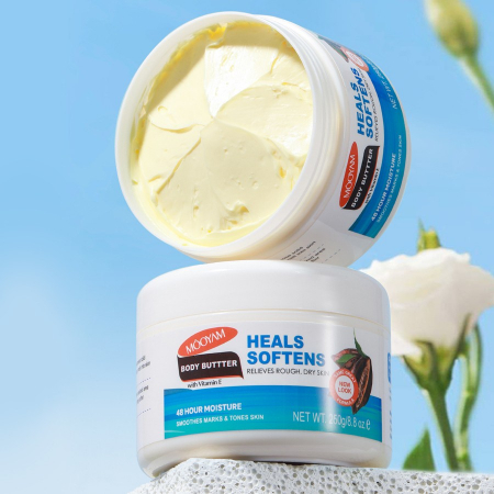 Масло какао повышает эластичность и упругость кожи, усиливает сопротивляемость кожной ткани к появлению стрий. Также масло какао ускоряет процесс восстановления поврежденных клеток кожи, благодаря чему его эффективно использовать после загара, или же для устранения таких косметических дефектов кожи как шрамы, рубцы, и пятна после прыщей.