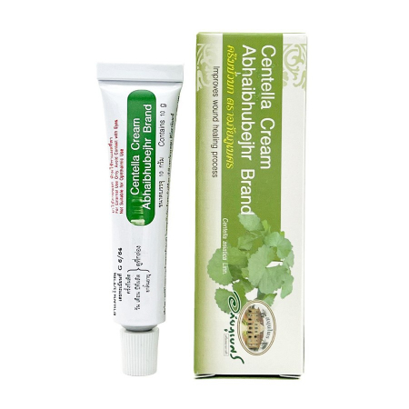 Крем на основе центеллы азиатской от тайского производителя Abhaibhubejhr стимулирует кожу к быстрому заживлению ран, порезов и царапин, способствует регенерации клеток кожи, значительно ускоряет процесс рубцевания тканей, избавляет кожу от высыпаний, устраняет шрамы различной этиологии, эффективно борется против бактерий.